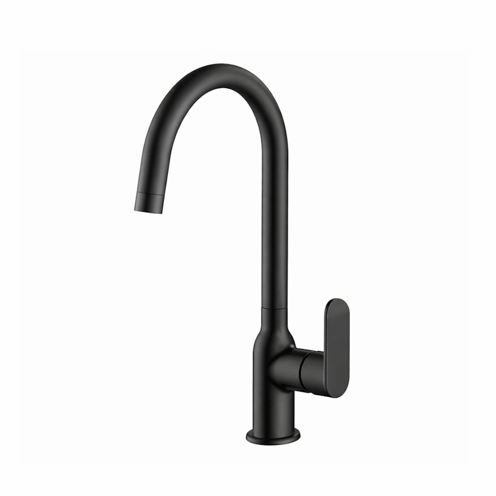 Bateria de bucătărie Nera AF33114-MB-T în finisaj negru mat oferă un aspect modern și elegant, potrivit pentru bucătării contemporane. Este realizată cu corp din alamă pentru rezistență și durabilitate și mâner din zinc pentru un control confortabil al apei. Bateria are o singură manetă, se montează pe o singură gaură (φ35 mm), este echipată cu cartuș ceramic pentru o funcționare fiabilă și silențioasă și include furtunuri flexibile de conectare pentru o instalare rapidă și sigură.