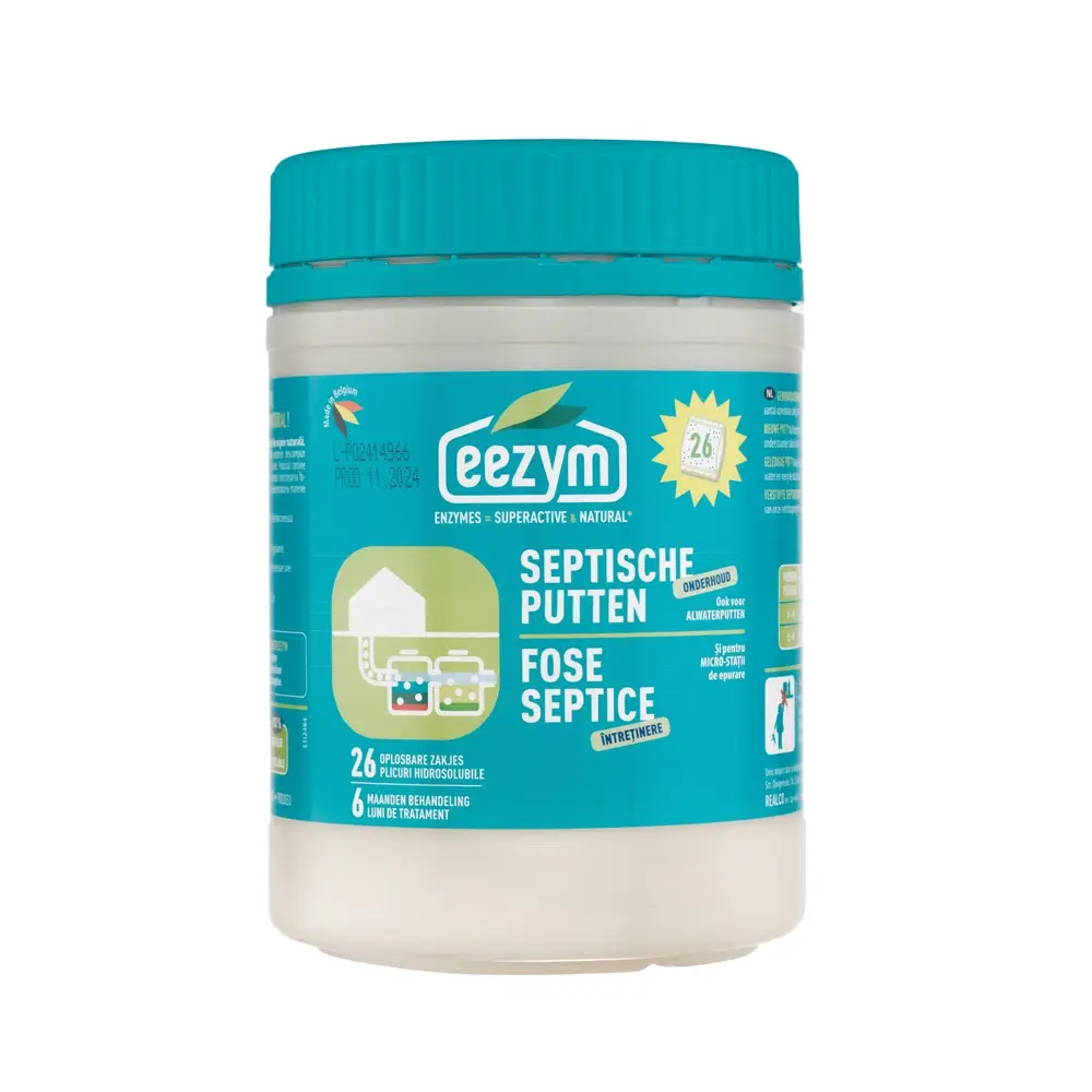 EeZym este un bioactivator natural pe bază de enzime și bacterii benefice, special conceput pentru întreținerea foselor septice și a microstațiilor individuale de epurare. Asigură o biodegradare eficientă a reziduurilor organice și menține funcționarea optimă a sistemului.
