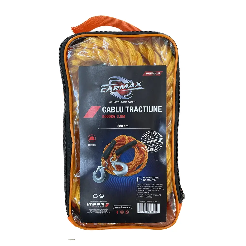 Cablul de tracțiune Carmax este un produs folosit pentru tractarea mașinilor . La capete, există două cărlige cu protecție împotriva decuplării. Produsul vine ambalat într-o geantă transparentă din plastic, ce poate folosi ulterior la depozitarea în siguranță a cablului de tracțiune. Avertisment: A nu se folosi pe drumuri publice!