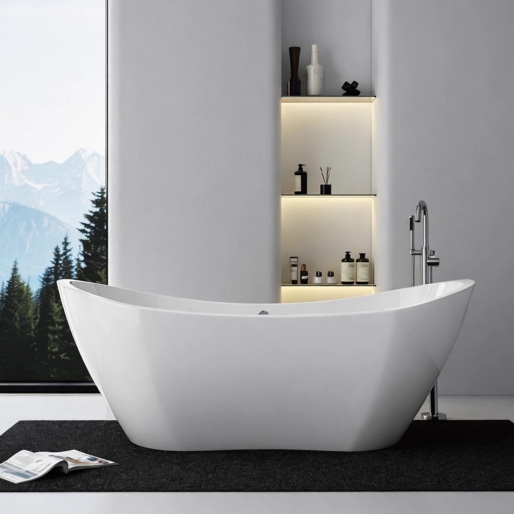 Cadă de baie elegantă, cu design modern și forme fluide, realizată din acril pur de calitate superioară, cu finisaj alb lucios. Dimensiunile generoase oferă un nivel ridicat de confort, fiind ideală pentru băi spațioase și amenajări premium.