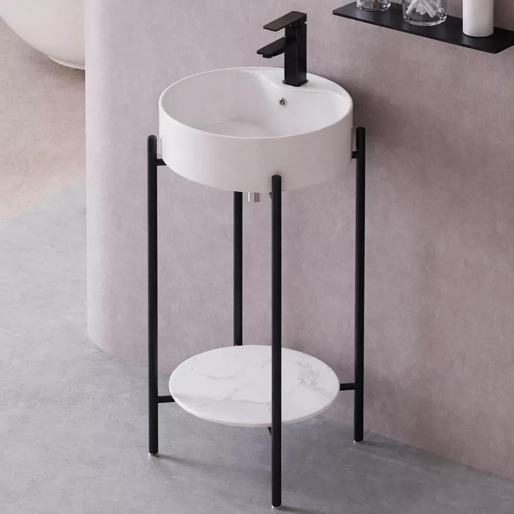Lavoarul Vera se remarcă prin designul său modern și elegant, combinând un lavoar ceramic rotund cu un suport metalic minimalist, pentru un aspect aerisit și contemporan. Este o soluție ideală pentru băi moderne, spații mici sau amenajări cu influențe industriale și scandinave.