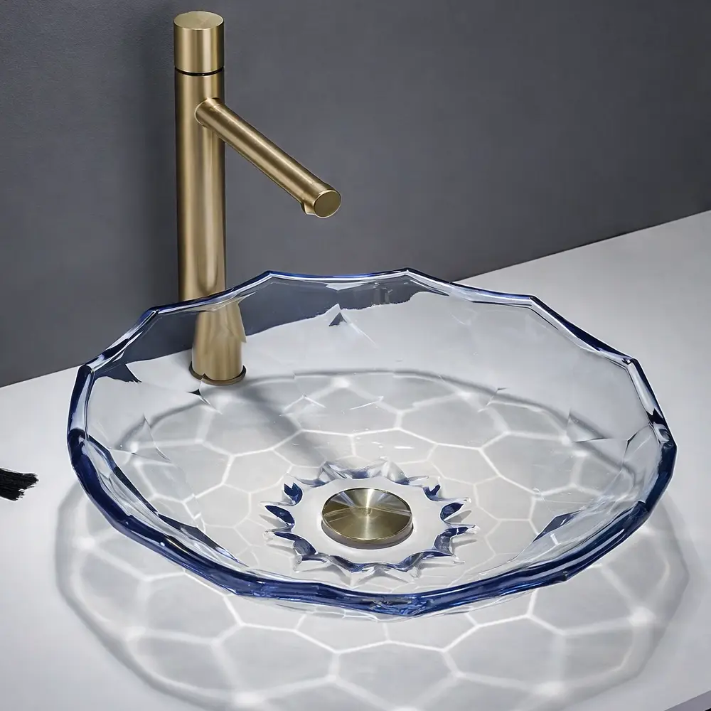 Lavoarul Aqua GL37A este un lavoar ceramic pe blat, cu un design elegant și formă rotundă, inspirată din texturi naturale. Finisajul albastru, cu efect decorativ și suprafață ușor translucidă, creează un joc subtil de lumină, oferind băii un aspect modern și rafinat.