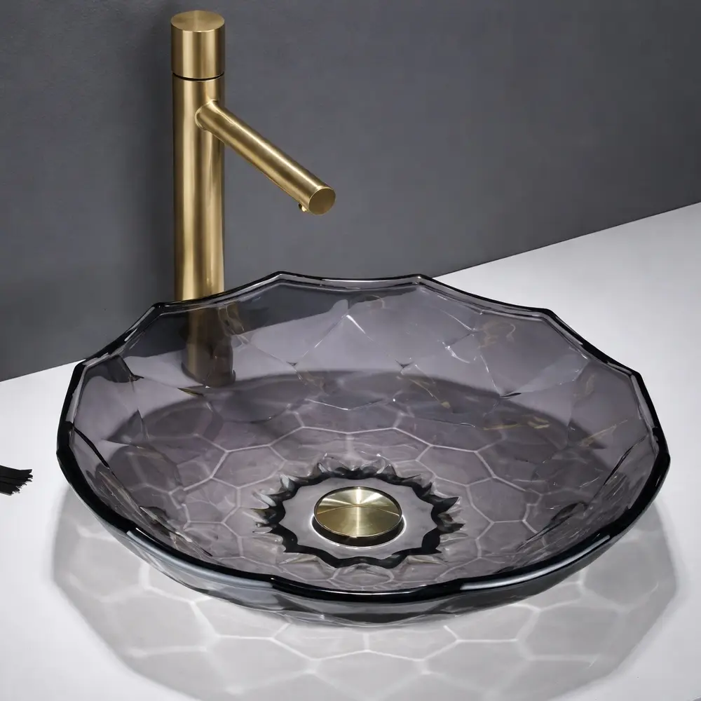 Lavoarul Aqua GL37A este un lavoar ceramic pe blat, cu un design elegant și formă rotundă, inspirată din texturi naturale. Finisajul negru, cu efect decorativ și suprafață ușor translucidă, creează un joc subtil de lumină, oferind băii un aspect modern și rafinat.