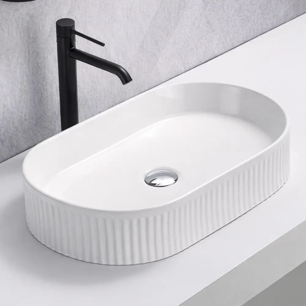 Lavoarul Linea se evidențiază prin designul său elegant și modern, cu formă ovală alungită și detalii verticale discrete pe exterior, care adaugă un plus de rafinament și personalitate băii. Stilul său contemporan îl face ideal pentru amenajări minimaliste, moderne sau premium.