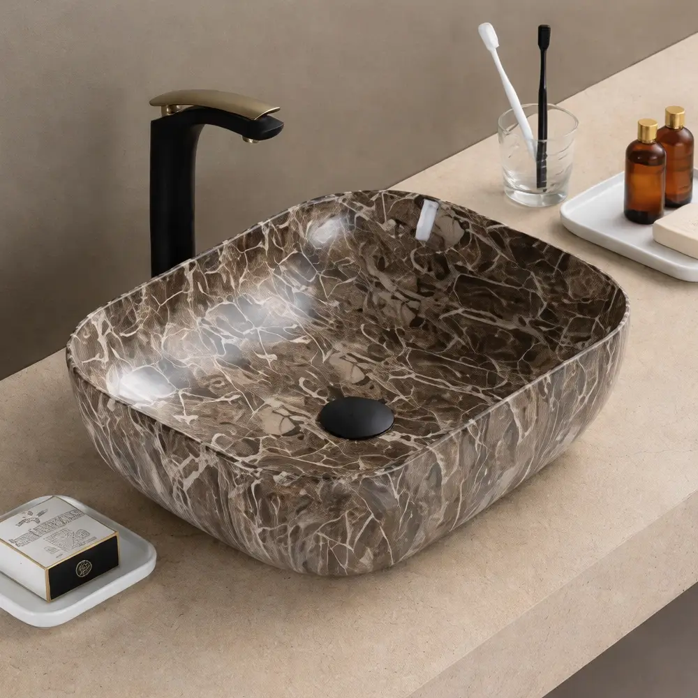 Lavoarul Montana este o alegere modernă și elegantă pentru băile contemporane, remarcându-se prin finisajul decorativ tip marmură în nuanțe calde de maro. Realizat din ceramică de înaltă calitate, acest lavoar oferă durabilitate, rezistență și un aspect premium.