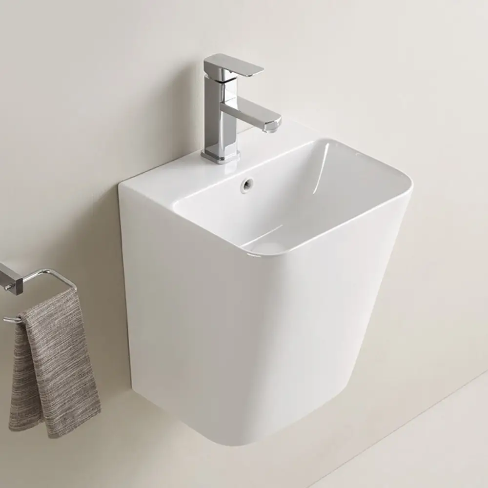 Lavoarul stativ Clarity se remarcă prin designul său modern și compact, fiind ideal pentru băi de dimensiuni reduse sau spații amenajate minimalist. Forma sa elegantă, cu linii curate și colțuri ușor rotunjite, oferă un aspect echilibrat și rafinat, integrându-se cu ușurință în orice concept de baie contemporan.