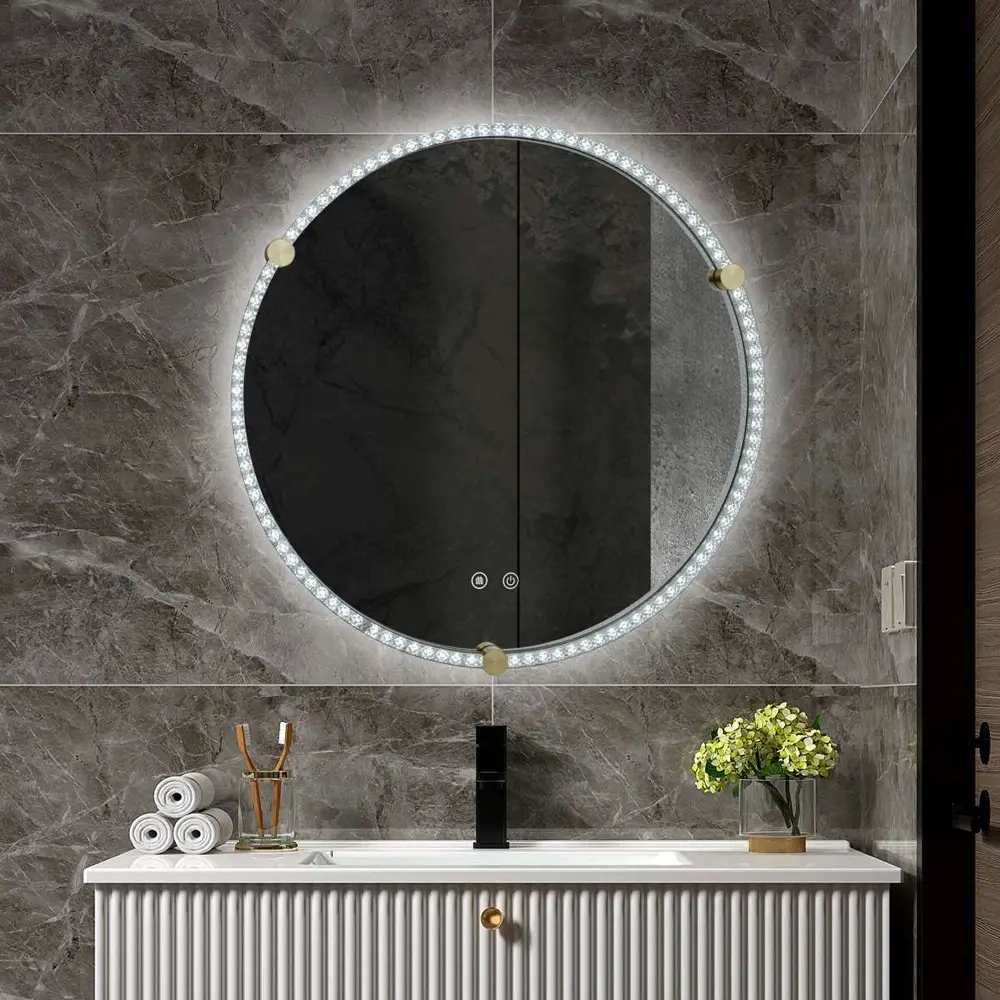 Oglinda LED Monelia se distinge prin designul său sofisticat, cu iluminare LED perimetrală decorativă tip cristal și accente metalice elegante, care adaugă un plus de rafinament oricărei băi moderne. Forma rotundă și diametrul de 60 cm o transformă într-un element central, ideal pentru amenajări premium sau spații cu influențe glam și contemporane.