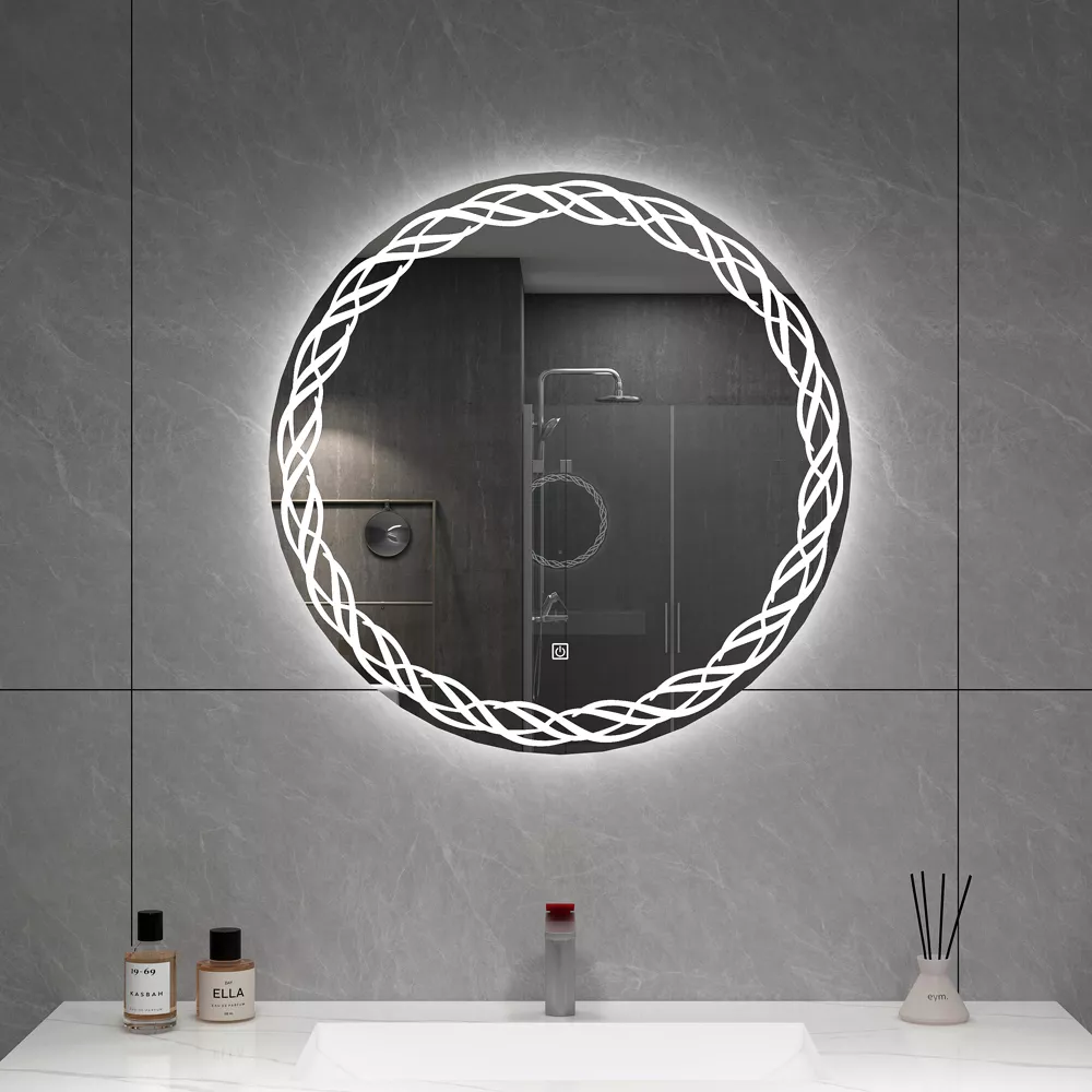 Oglinda LED Orlena se distinge prin designul său decorativ rafinat, caracterizat de un model împletit luminos dispus circular, care creează un efect vizual elegant și sofisticat. Cu diametrul de 60 cm, această oglindă rotundă devine un element de accent ideal pentru băi moderne și spații premium.