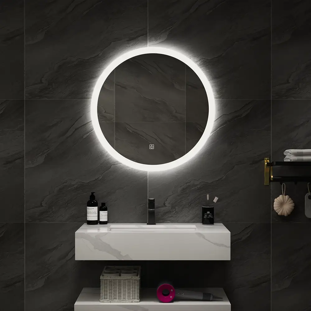 Oglinda LED Velona se evidențiază prin designul său circular modern și iluminarea LED perimetrală continuă, care creează un efect luminos tip „halo”, elegant și bine definit. Cu diametrul de 60 cm, este o alegere ideală pentru băi contemporane care pun accent pe rafinament și funcționalitate.