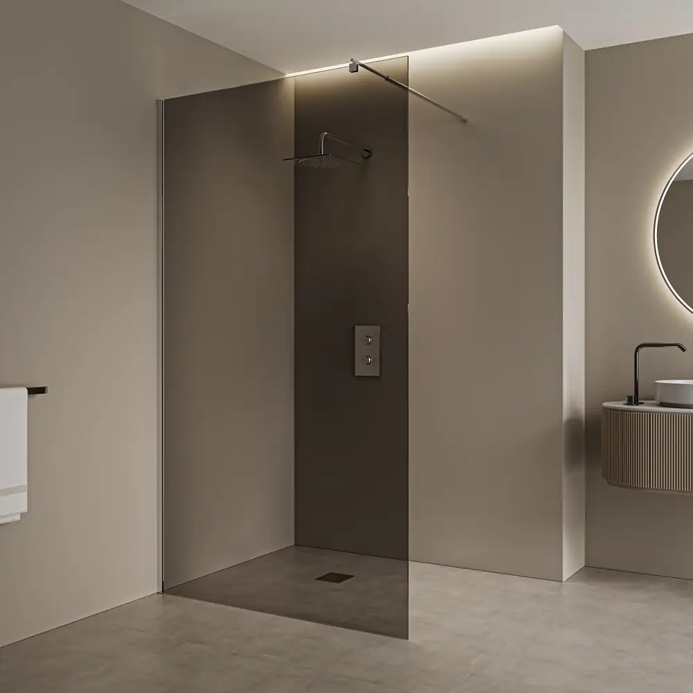Paravanul de duș fix DY101 este realizat din sticlă gri securizată de 8 mm, profil crom, oferă un aspect modern și elegant oricărei băi. Stabil, durabil și ușor de întreținut, este potrivit pentru dușurile tip walk-in sau pentru montaj pe cădiță.