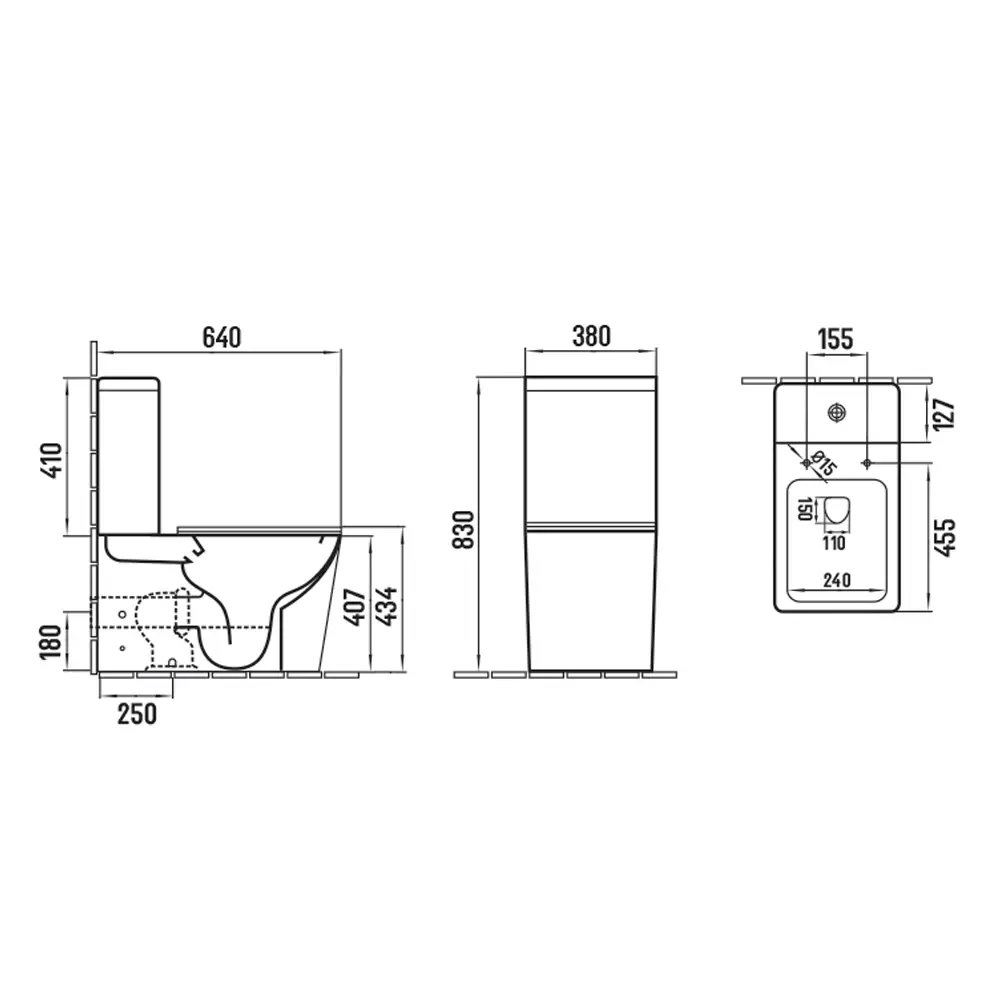 Construcție din două piese – vas WC + rezervor